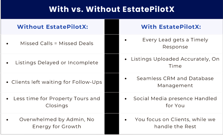 We’re not just a support service — we’re your silent partner in growth. With EstatePilotX, you don’t just manage your day, you maximize it.